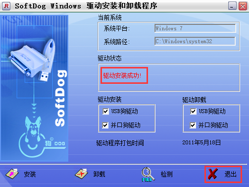 • 显示”驱动安装成功!”点击右下角的退出即可,驱动安装完毕