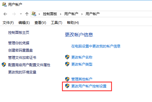 打开计算机控制面板,并依次找到用户账户,点击”更改用户账户设置”